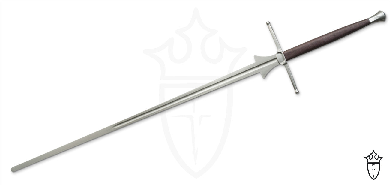 Other features include a ramped thumb guard, allowing easy placement of a gloved thumb onto and off the blade during guard transitions. The pommel is indexed to the flat of the blade, making it second nature to distinguish proper edge alignment with the rearward hand. The wood core grip is in a well rounded rectangular cross section and tightly bound with an overwrap of cord to provide a firm grip